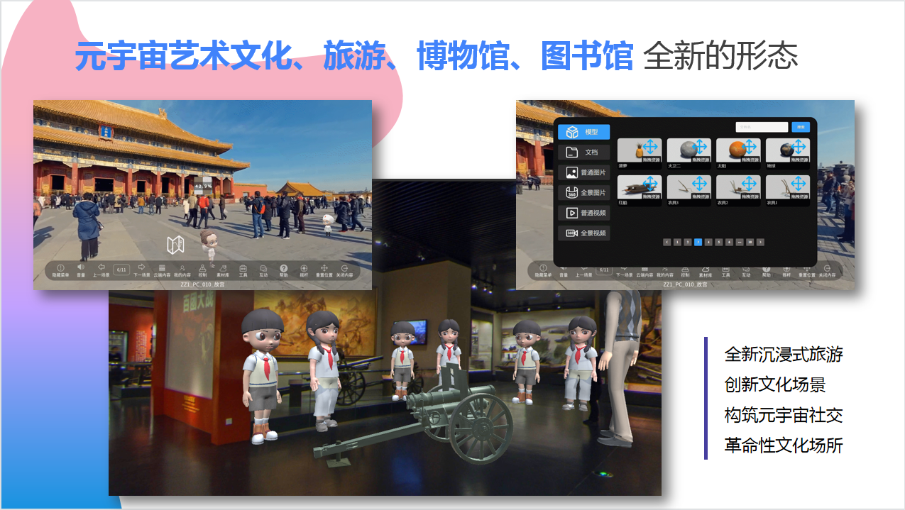 在未來(lái),元宇宙虛擬空間可以運(yùn)用在非常多的領(lǐng)域,特別是在教育、旅游、展廳、商業(yè)中有很大的發(fā)展空間。